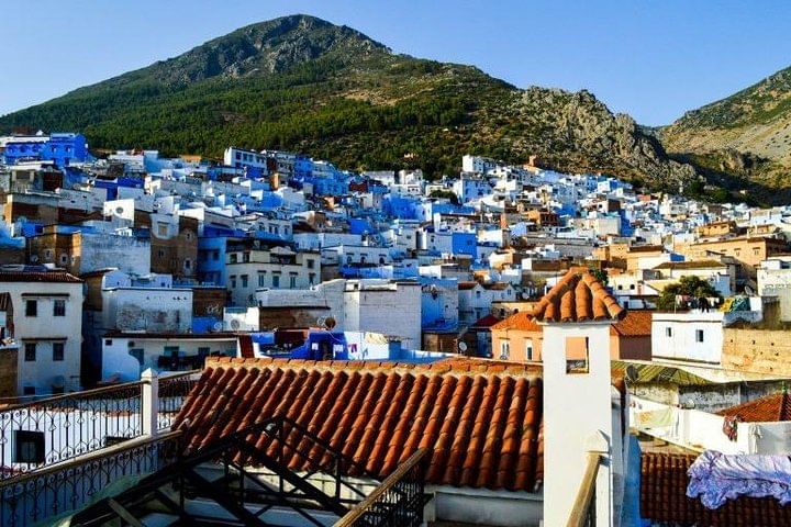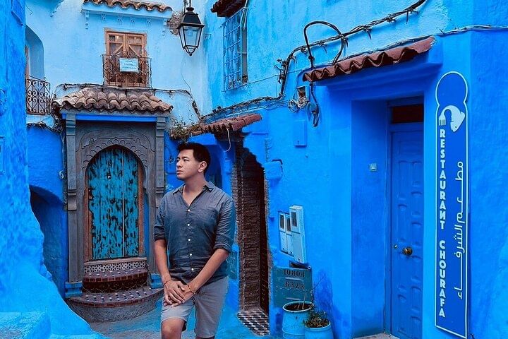 "Experience the charm of Chefchaouen on a day trip from Tangier. Wander through the Blue City's vibrant medina, savor authentic Moroccan cuisine, and relax by the peaceful Ras El Maa waterfall.